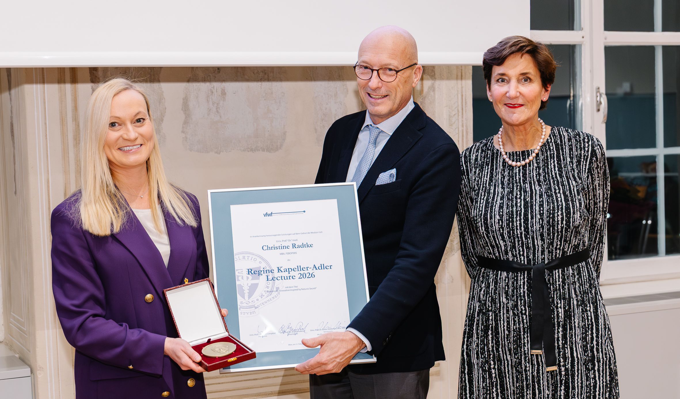 Nach der Begrüßung durch vfwf-Präsidentin Eva Maria Compérat, sowie einleitenden Worten von MedUni Wien Vizerektorin Michaela Fritz, präsentierte Christine Radtke ihre Lecture zum Thema ‚Biomimicry: Innovation Inspired by Nature’s Secret!‘, darin sprach sie über die Entwicklung der Plastischen Chirurgie von der Rekonstruktiven Chirurgie zur Regenerativen Chirurgie. Und die Rolle der Biomimetik. Im Anschluss wurde sie mit der Regine Kapeller-Adler-Medaille ausgezeichnet.